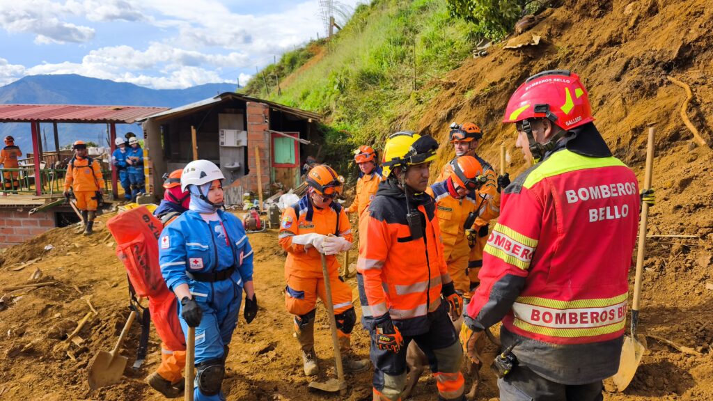 En el punto cero del desastre, organismos de emergencia como Bomberos, Defensa Civil, Dagran y SIATA, junto con maquinaria pesada, trabajan intensamente, mientras geólogos valoran la estabilidad del terreno. Se instalaron sirenas de alerta temprana y reflectores nocturnos para facilitar las labores nocturnas.