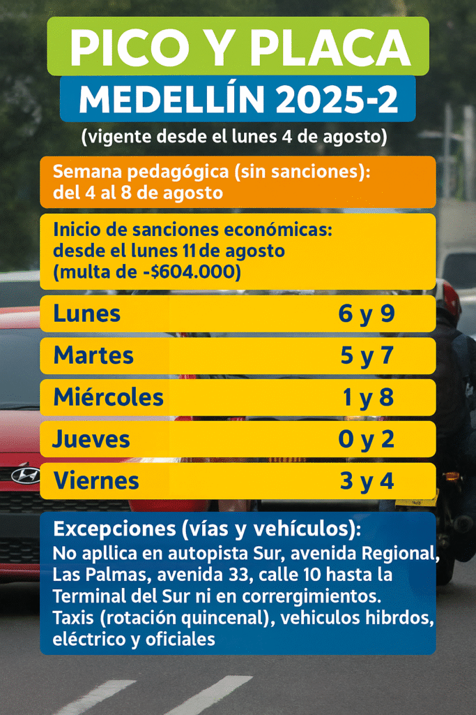Pico y Placa en Medellín 2025-2: así será la rotación para el segundo semestre del año